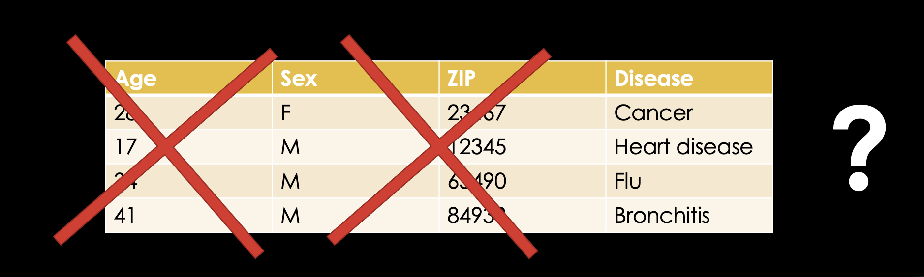 But knowing what we know that, that age, sex, and ZIP code are enough to identify you to a pretty high degree, should we delete those as well? Is the database still in any way usable if we do that?