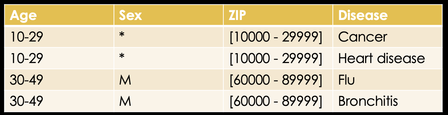 Note, that we could've just as easily generalized the ZIP code and, thus, retained some information that is lost by suppression.
